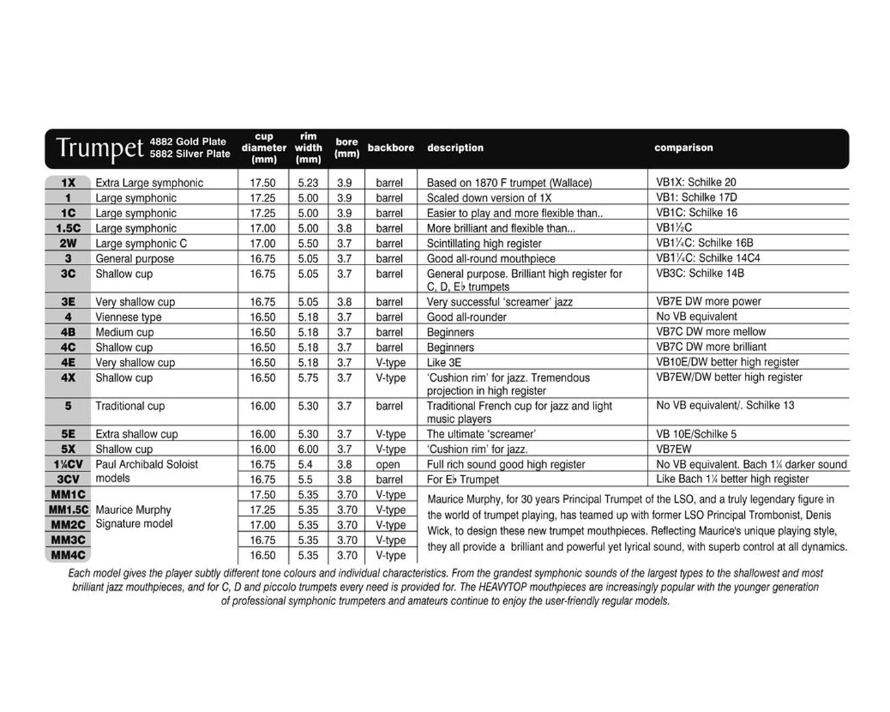 Denis Wick used the popular American Classic sizing for as the basis for the Ultra mouthpiece for Trumpet. While the sizing is the same as the American Classic, the Ultra mouthpiece has added mass to the upper portion of the mouthpiece, which aids in projection and offers a slightly different tonal response and color than the American Classic.