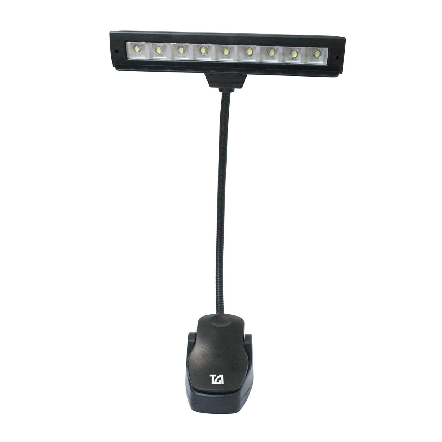 Large Music Stand Lamp with 9 LED bulbs • 2 x Brightness settings • Strong clamp suitable for most music stands • 3 x AA batteries (supplied) • 1 x AC Adaptor (supplied)